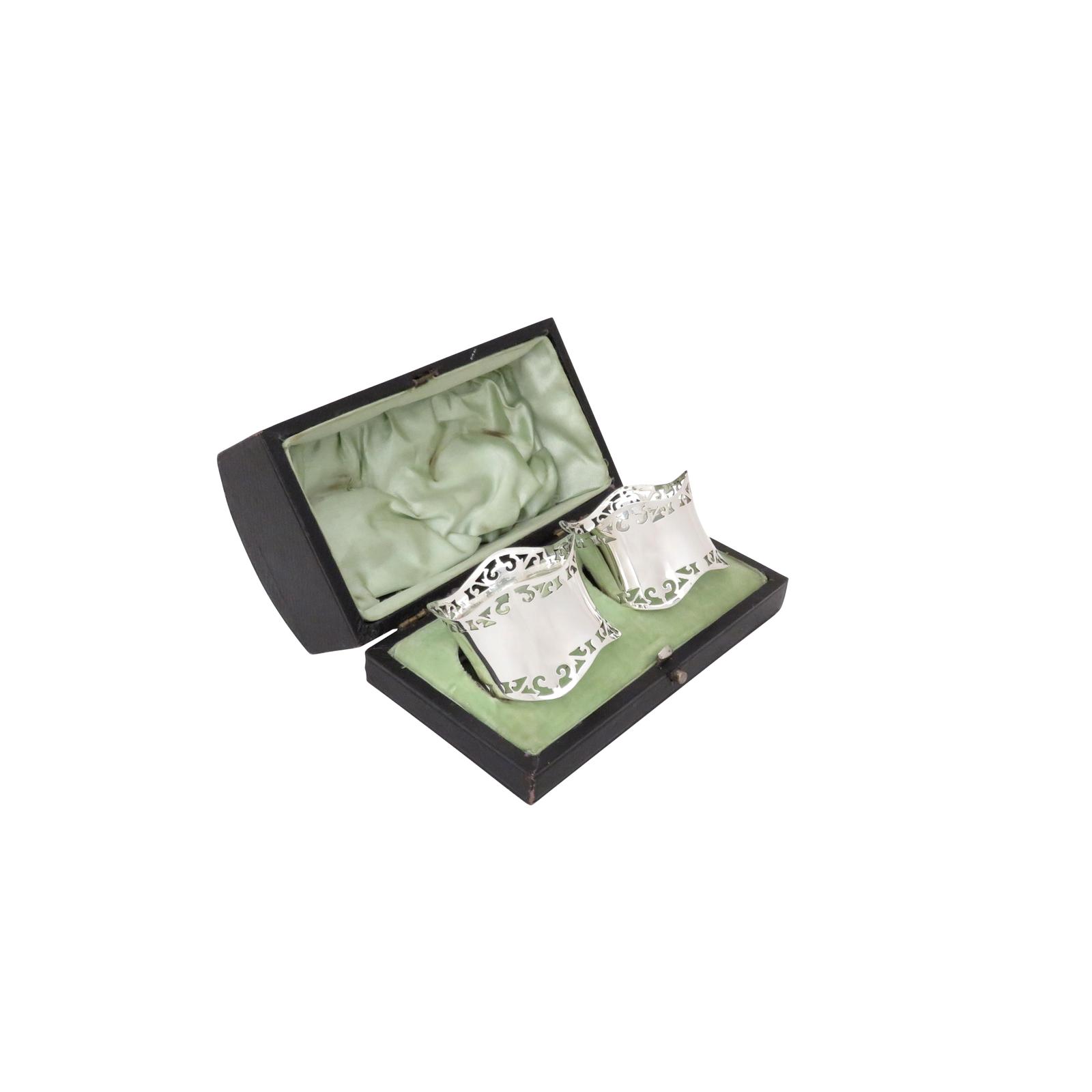 Pair of Antique George V Sterling Silver Napkin Rings in Case 1912