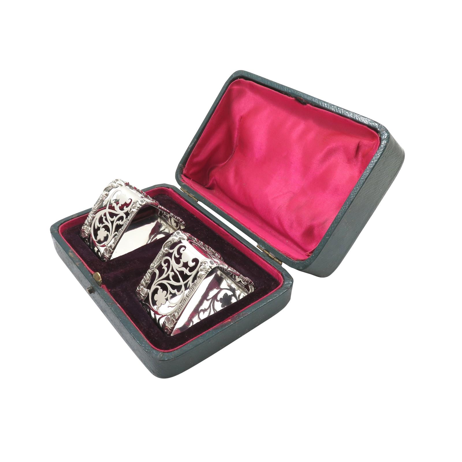 Pair of Antique George V Sterling Silver 'Triangle' Napkin Rings in Case 1912