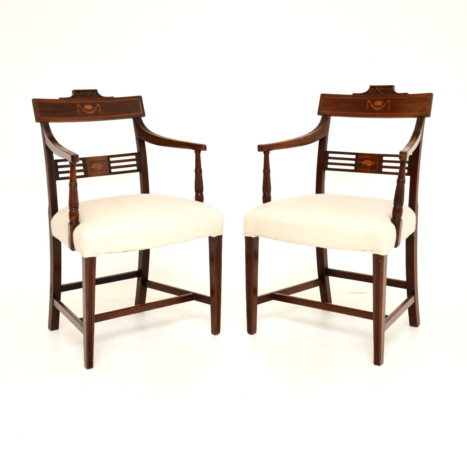 Pair of Antique Georgian Inlaid Mahogany Armchairs