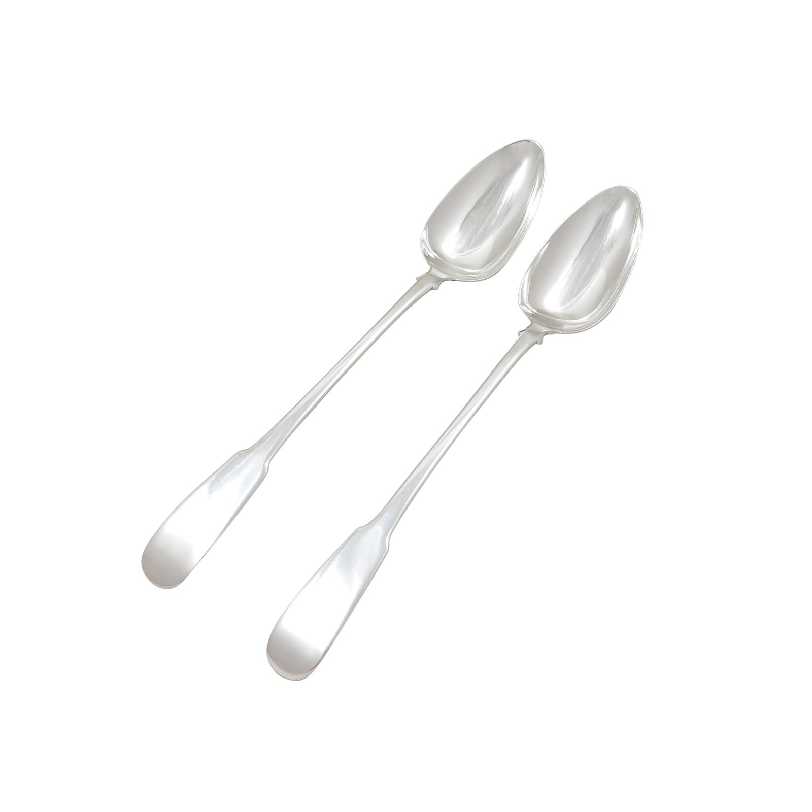Pair of Antique Georgian Scottish Sterling Silver Serving Spoons 1815