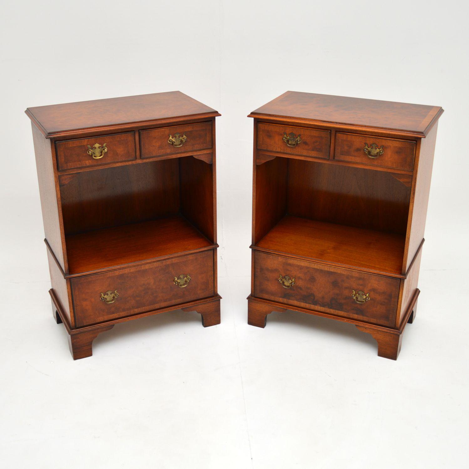 Pair of Antique Georgian Style Burr Walnut Bedside Cabinets