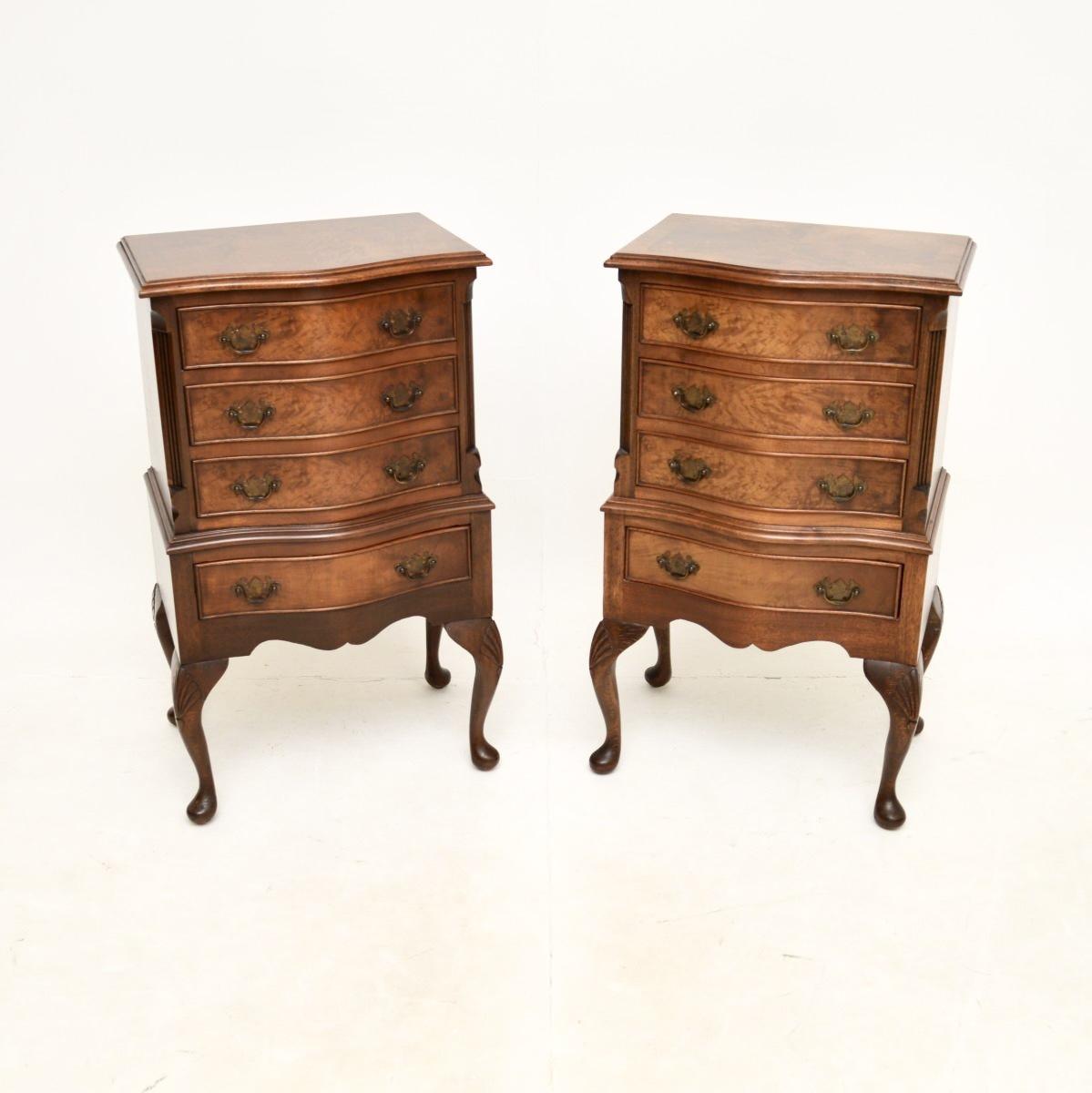 Pair of Antique Georgian Style Burr Walnut Bedside Chests