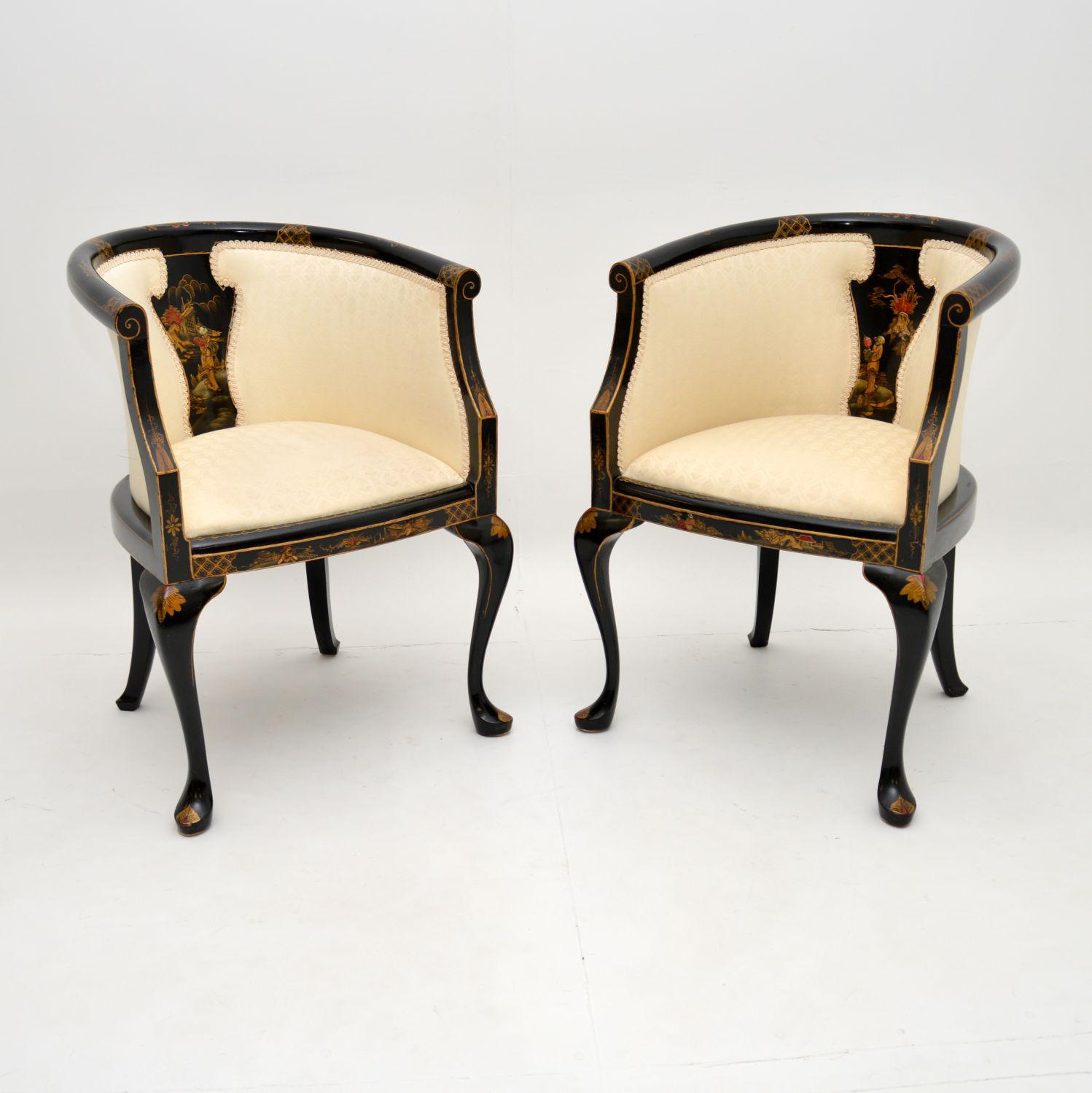 Pair of Antique Georgian Style Chinoiserie Tub Chairs