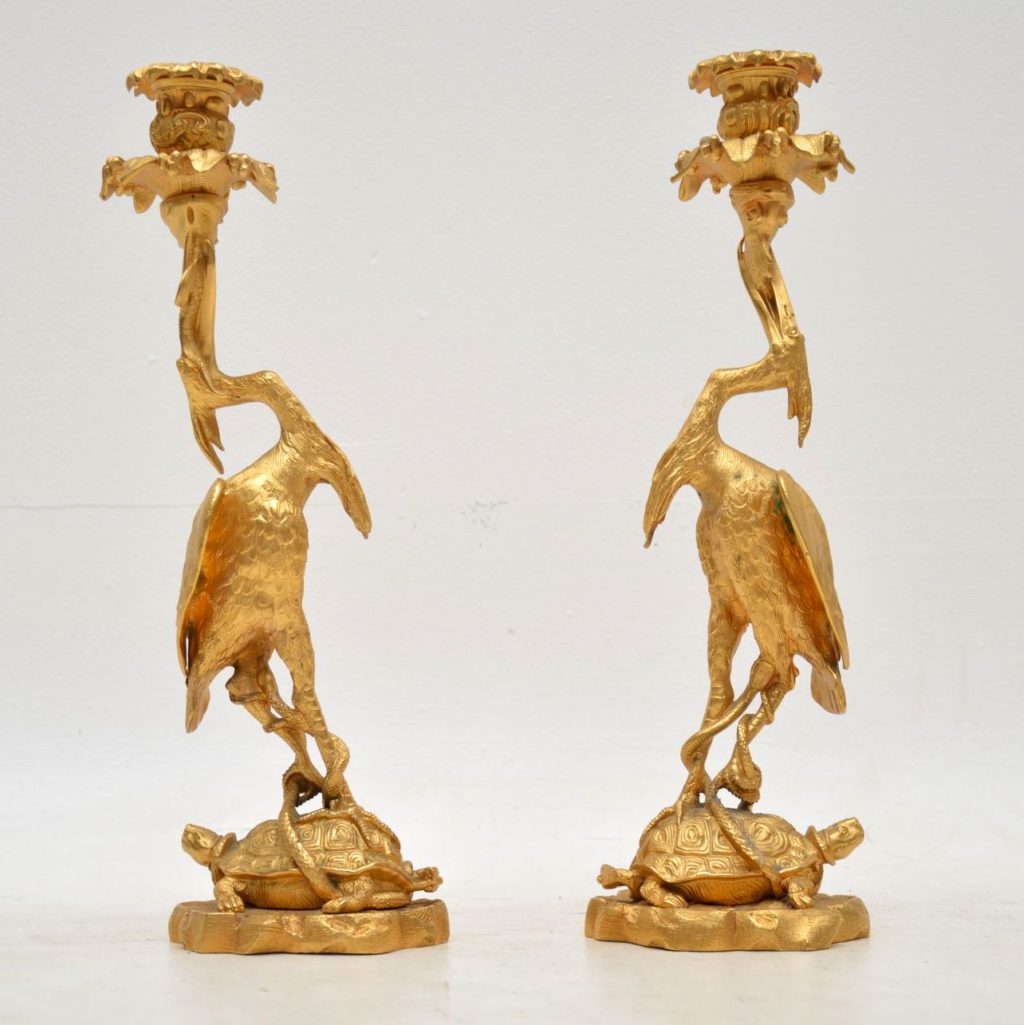 Pair of Antique Gilt Bronze Candlesticks c.1850