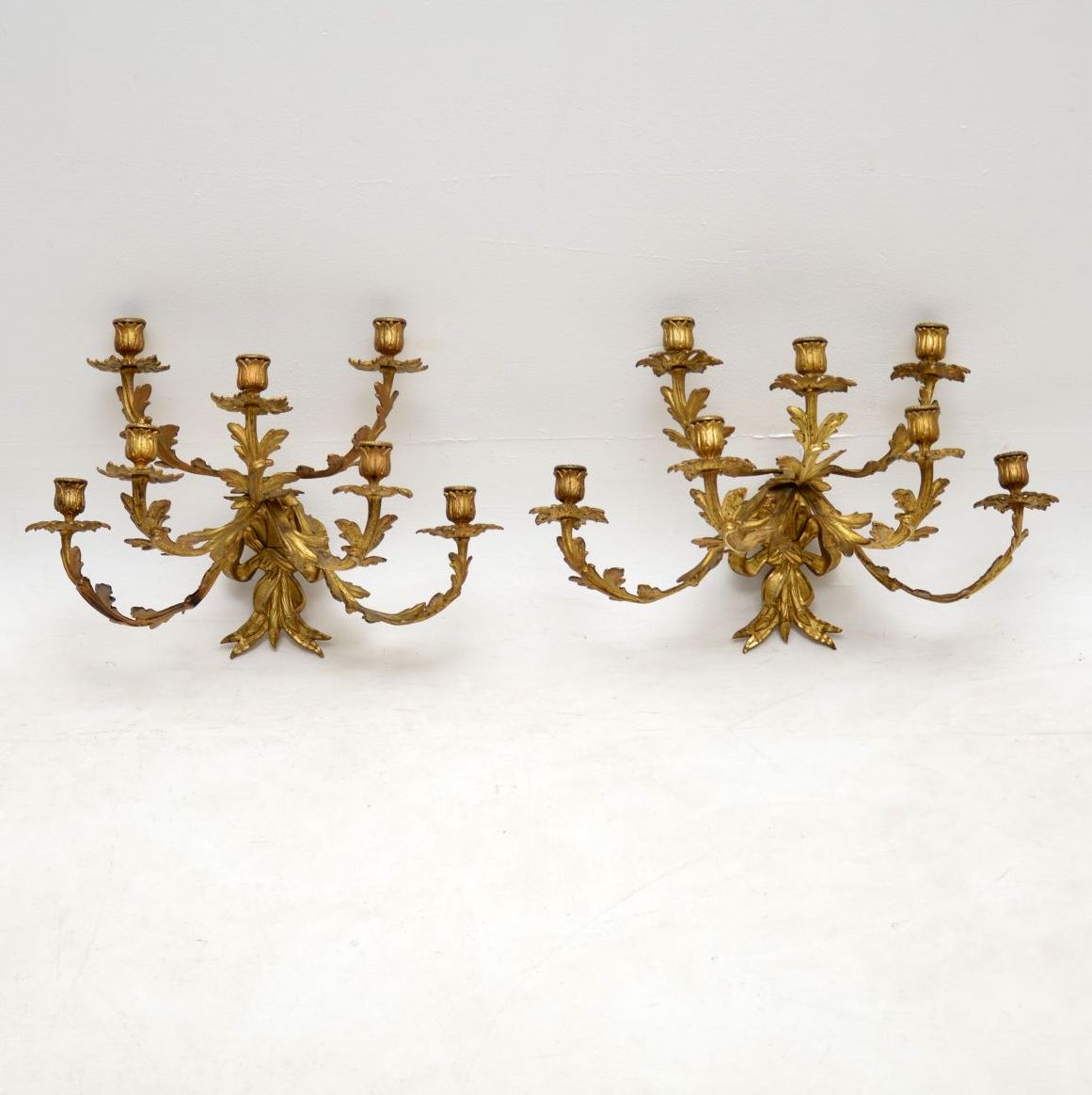 Pair of Antique Gilt Bronze Wall Sconce Candelabra (1 of 9)
