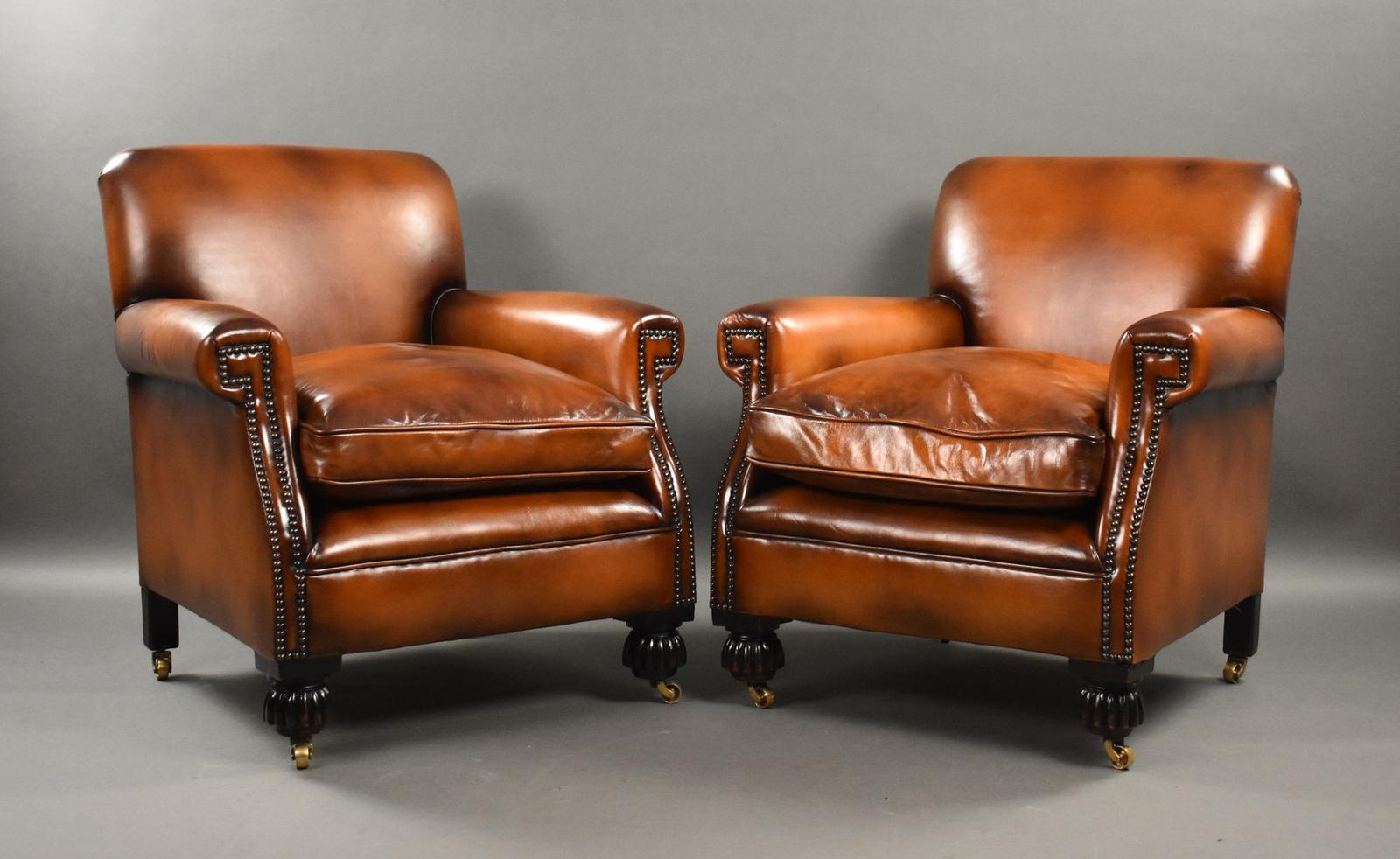 Pair of Antique Hand Dyed Leather Club Chairs