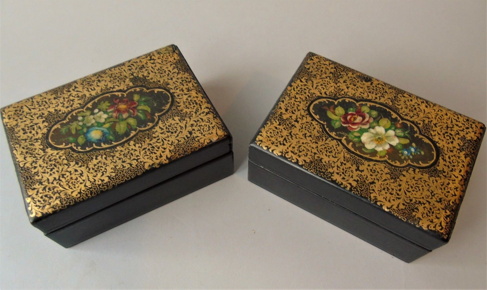 Pair of Antique Hand Painted Papier Mache Trinket Boxes