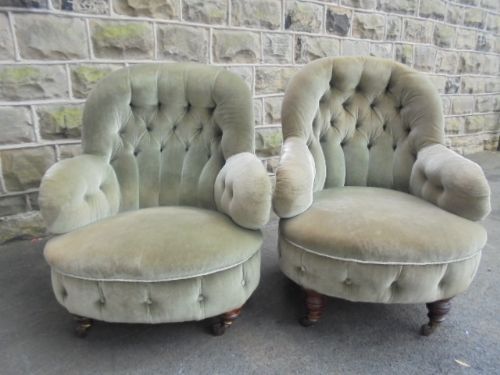 Pair of Antique His & Hers Upholstered Armchairs c.1880