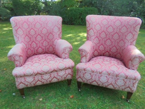 Pair of Antique Howard Style Upholstered Armchairs c.1900