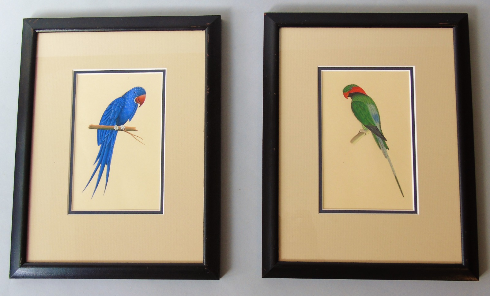 Pair of Antique Indian Watercolours of Parrots (1 of 1)