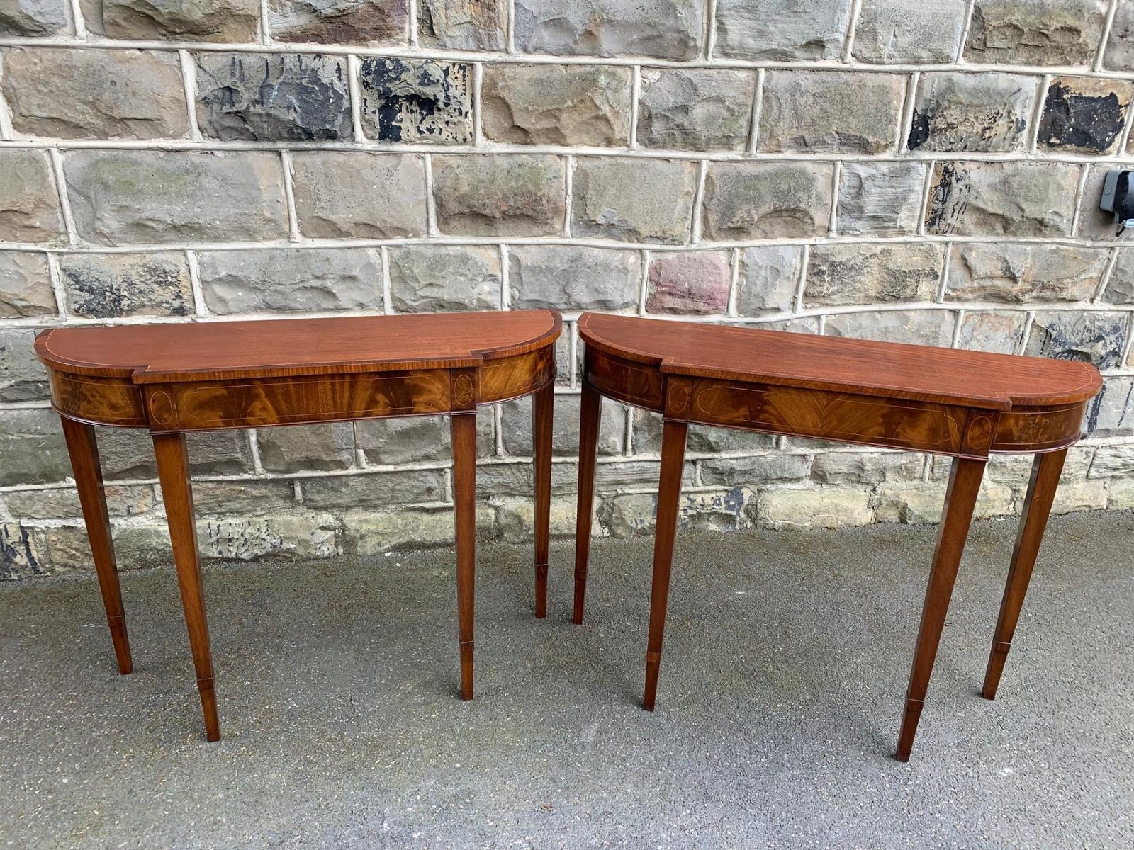 Pair of Antique Inlaid Mahogany Console Tables