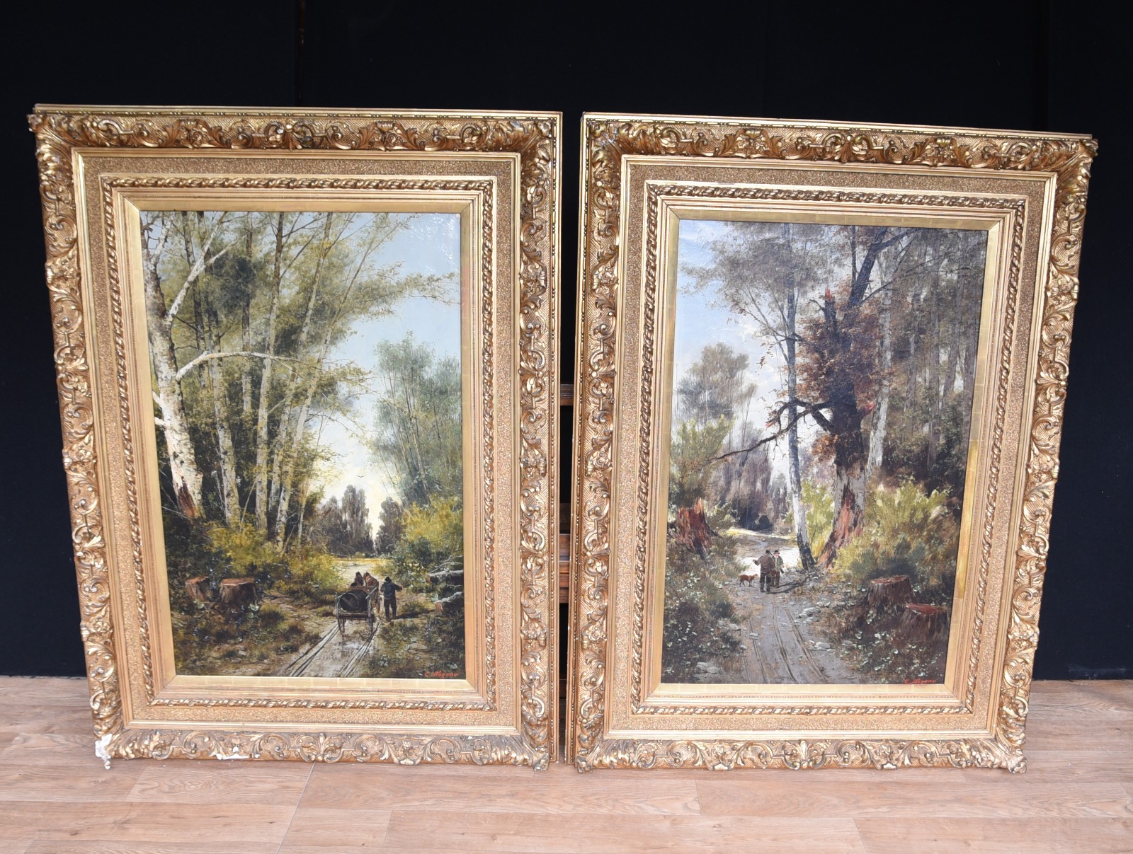 Pair of Antique Italian Landscape Oil Paintings Signed C.Avagano