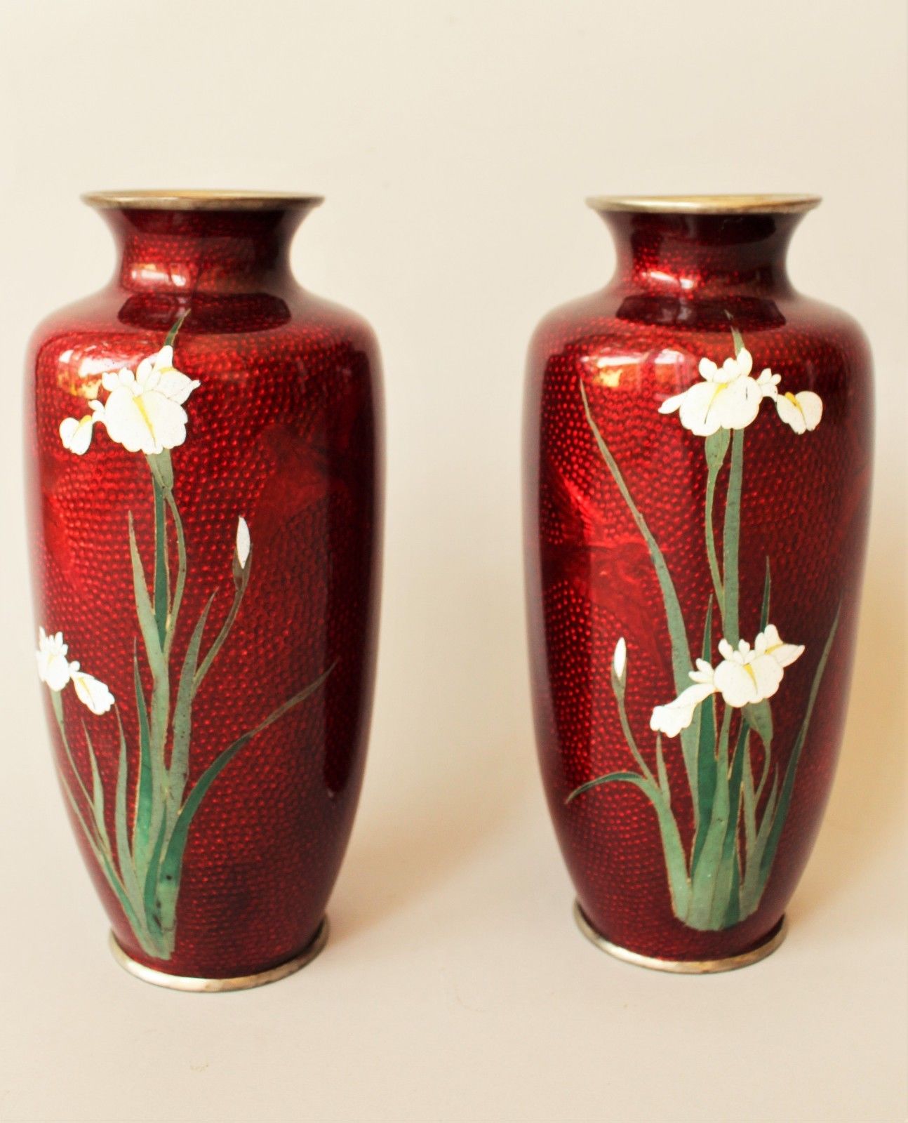 Pair of Antique Japanese Ginbari Cloisonne Vases