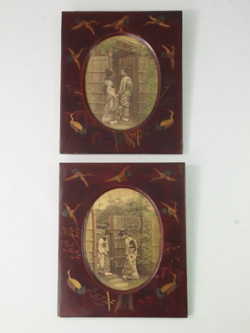 Pair of Antique Japanese Meiji Oval Photo Frames c.1900