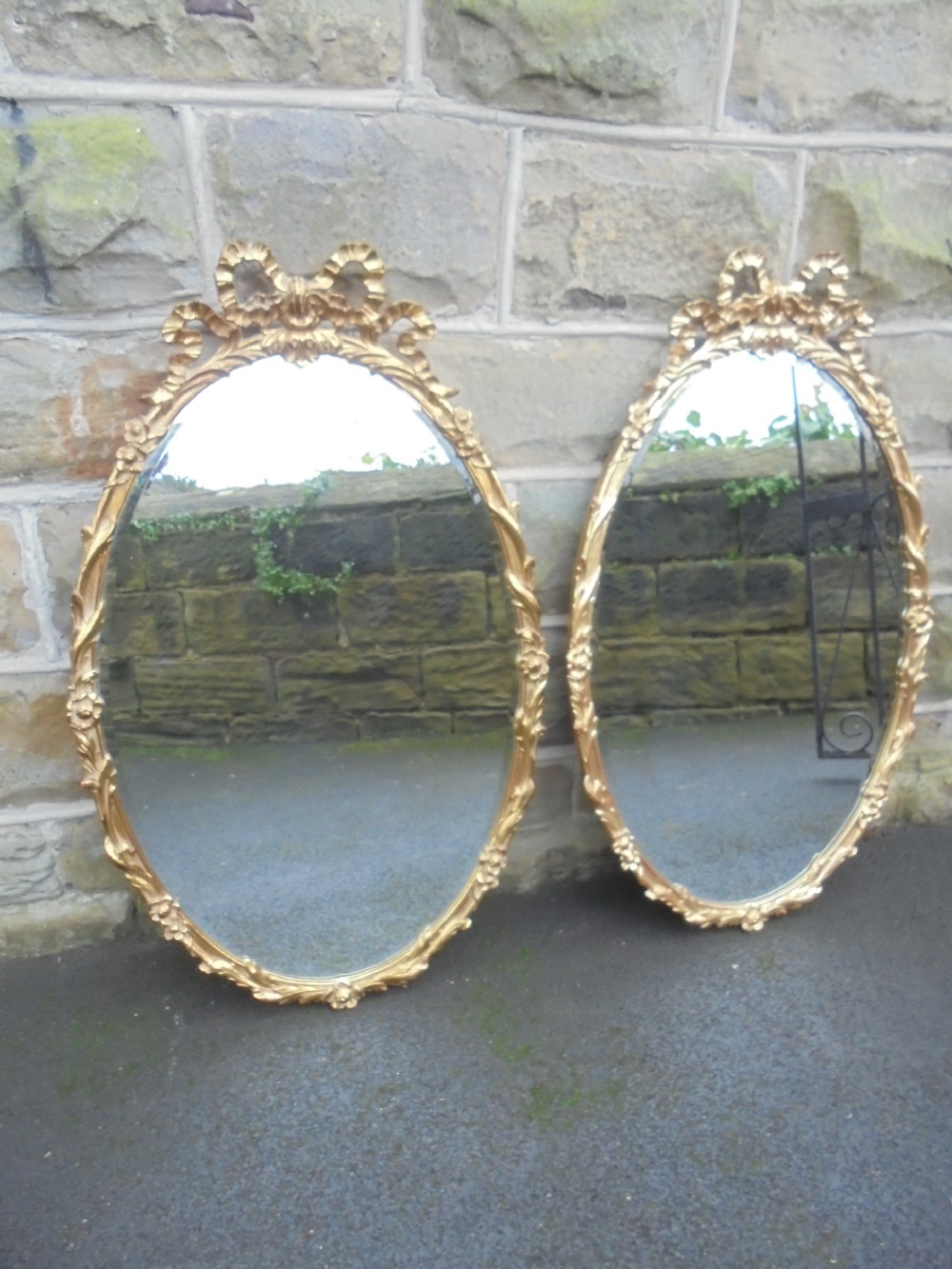 Pair of Antique Large Oval Gilt Framed Wall Mirrors