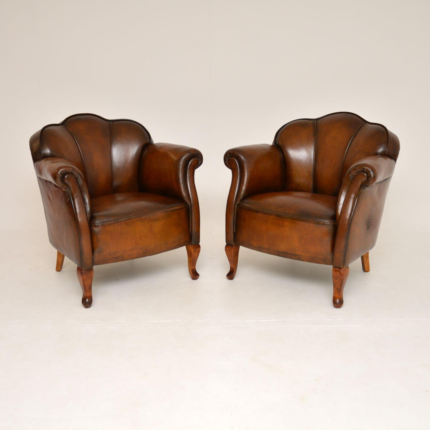 Pair of Antique Leather Club Armchairs