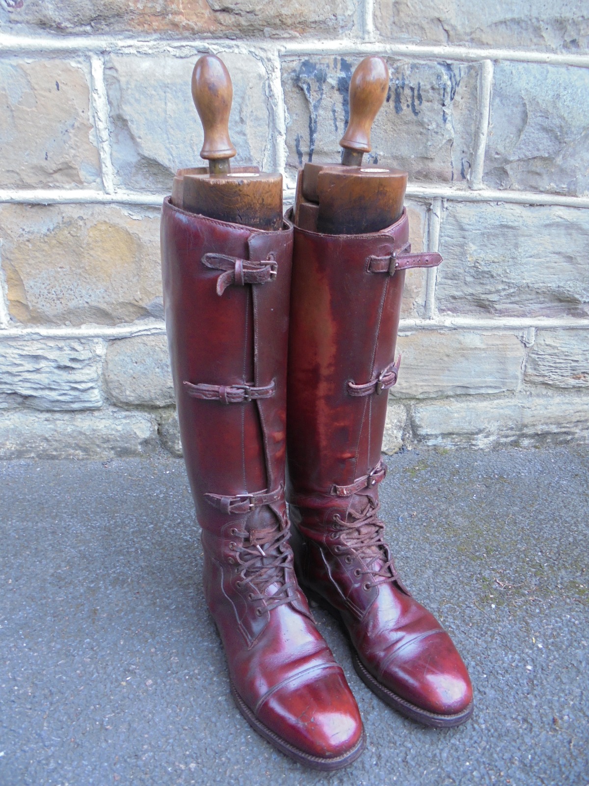 Pair of Antique Leather Field Officers Boots by Harrods