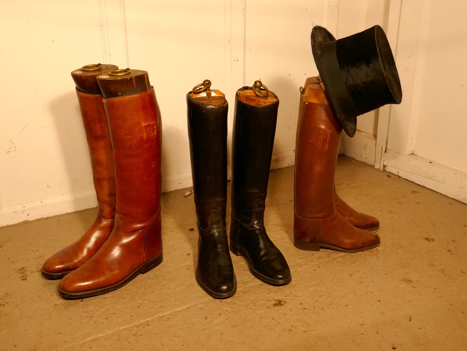 Pair of Antique Leather Riding Boots with Wooden Trees