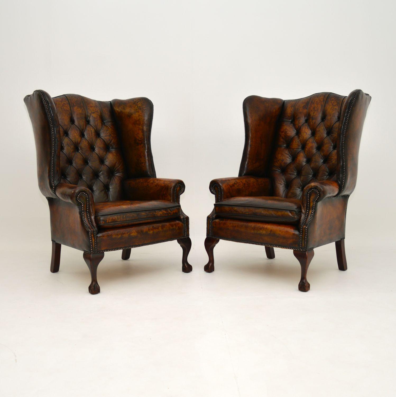 Pair of Antique Leather Wing Back  Armchairs (1 of 11)