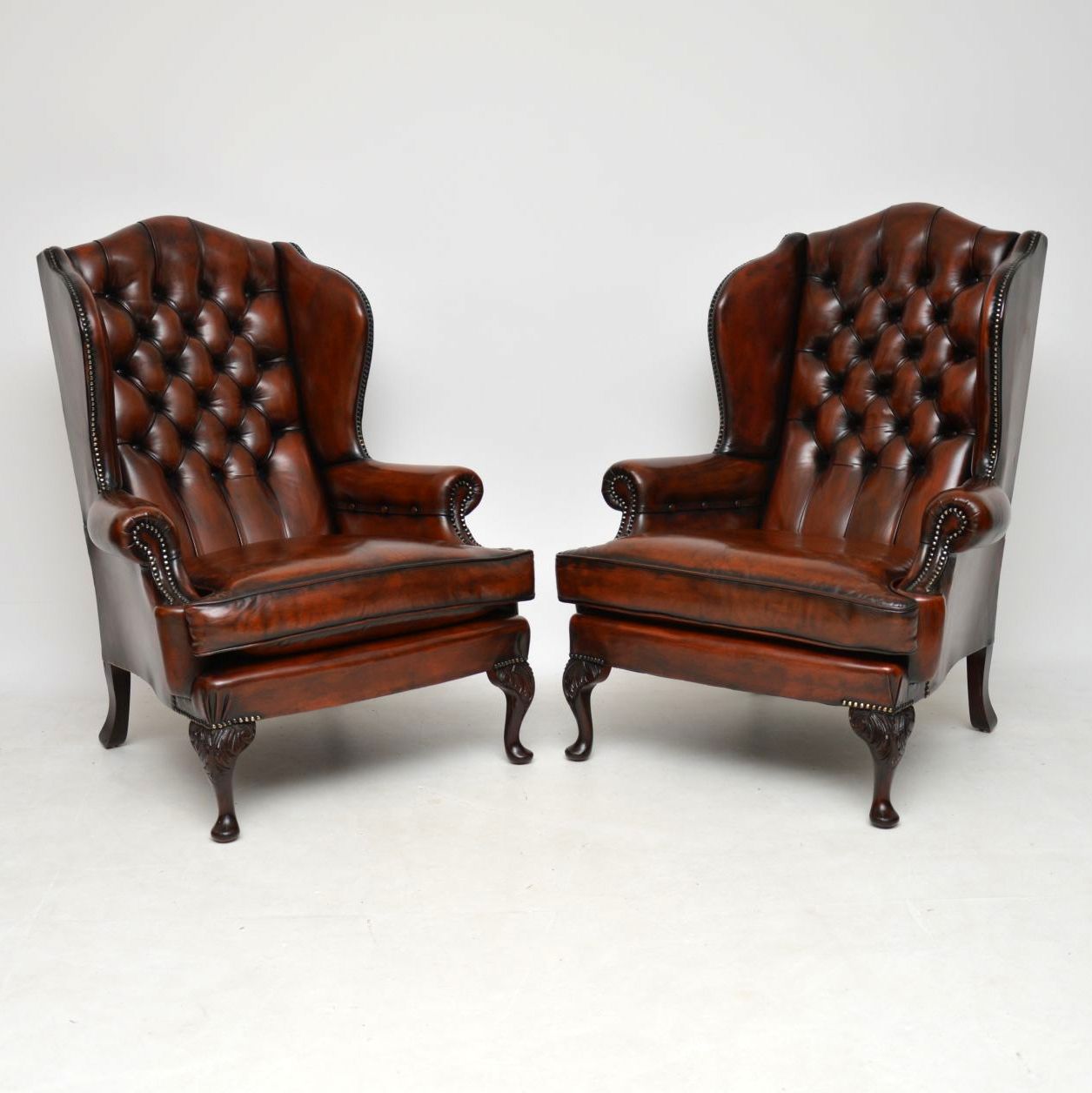 Pair of Antique Leather Wing Back Armchairs c.1910