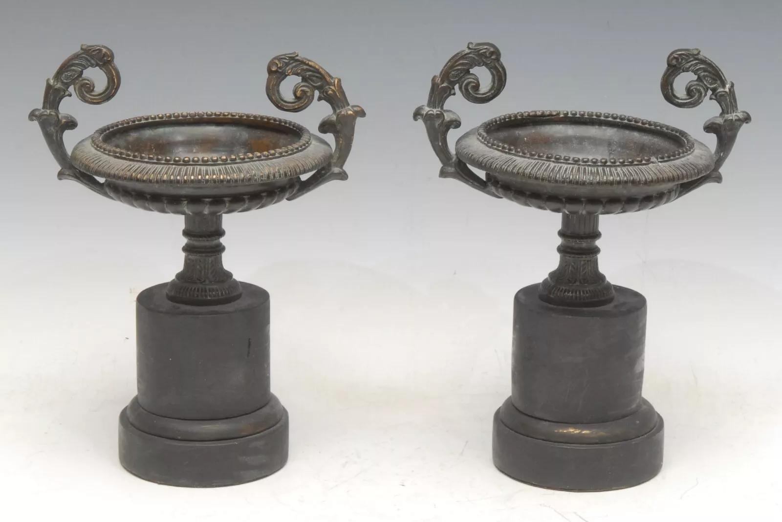 Pair of Antique Louis XIV Style Patinated Bronze Urns 19th Century Grand Tour Manner