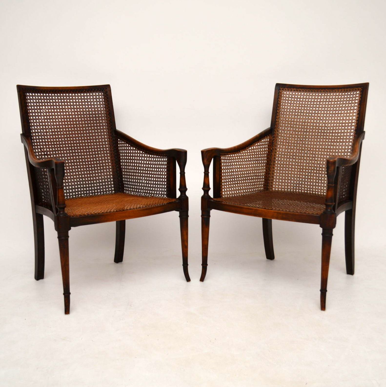 Pair of Antique Mahogany & Cane Armchairs c.1910