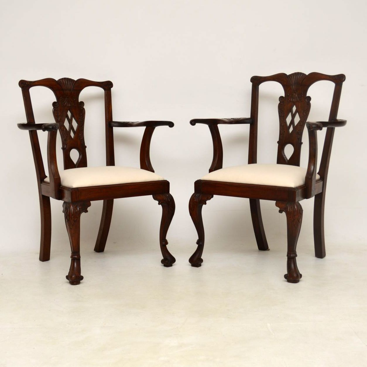 Pair of Antique Mahogany Chippendale Carver Armchairs