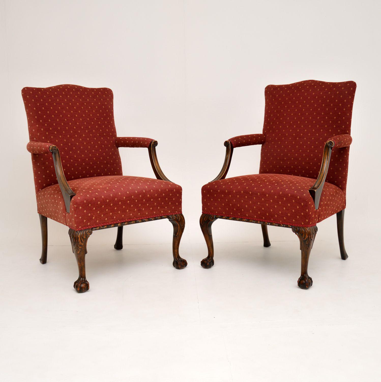 Pair of Antique Mahogany Chippendale Style Armchairs