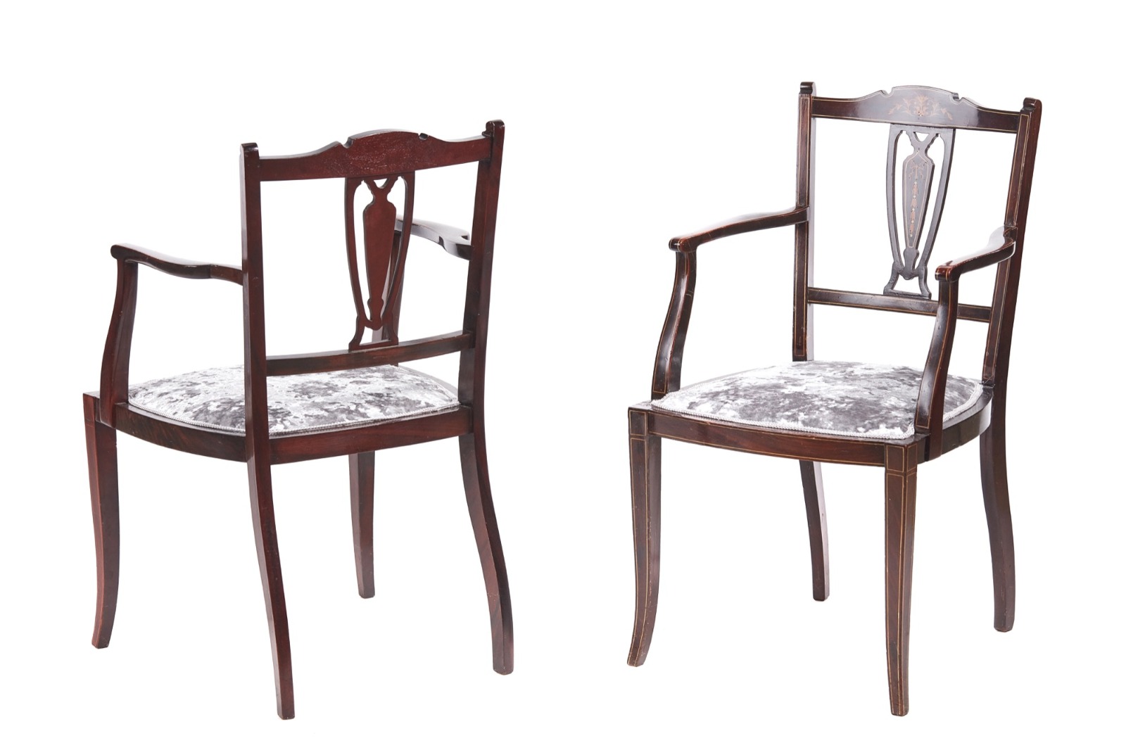 Pair of Antique Mahogany Inlaid Armchairs (1 of 9)