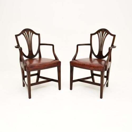 Pair of Antique Mahogany & Leather Carver Armchairs