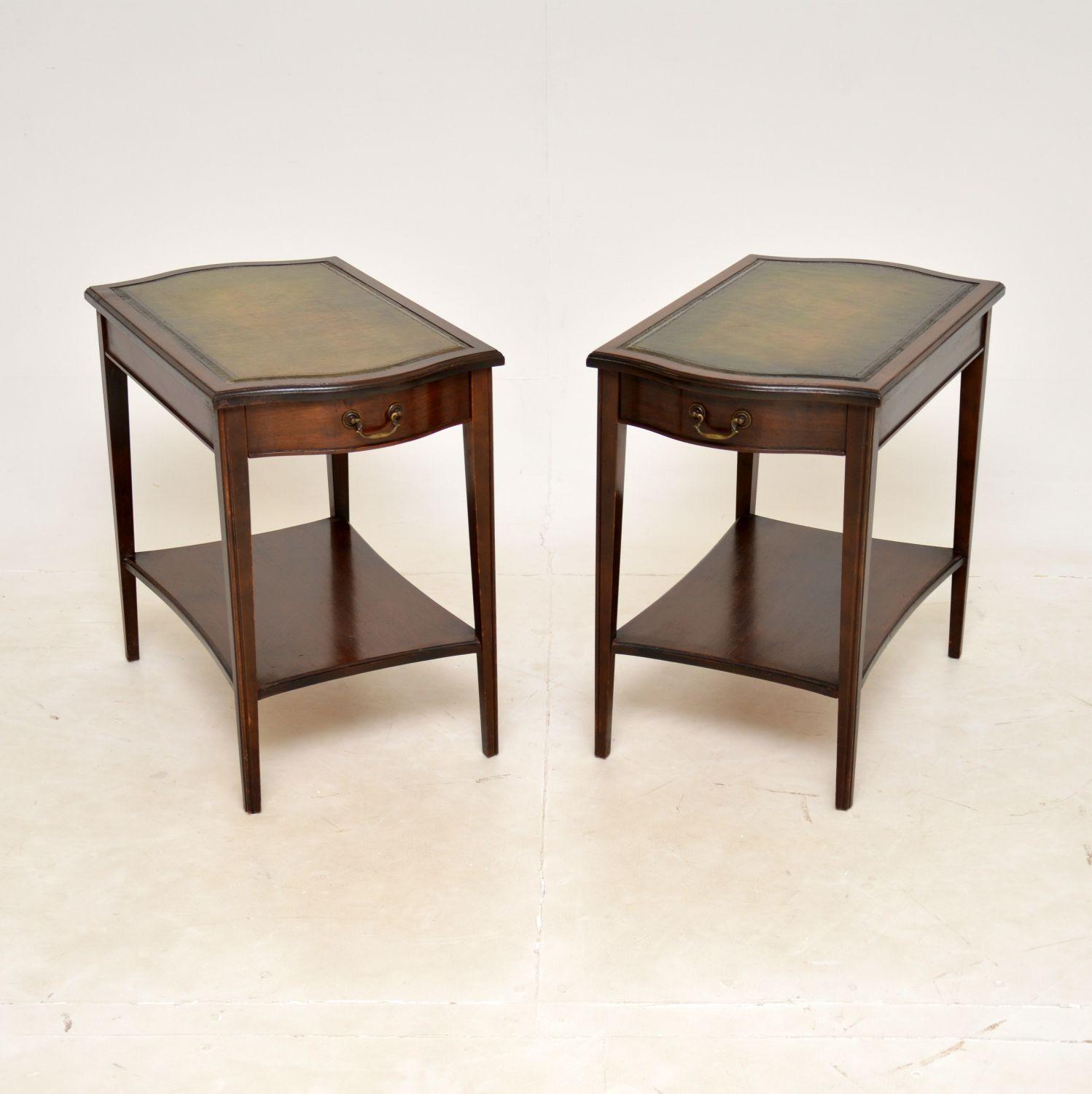 Pair of Antique Mahogany & Leather Side Tables (1 of 9)