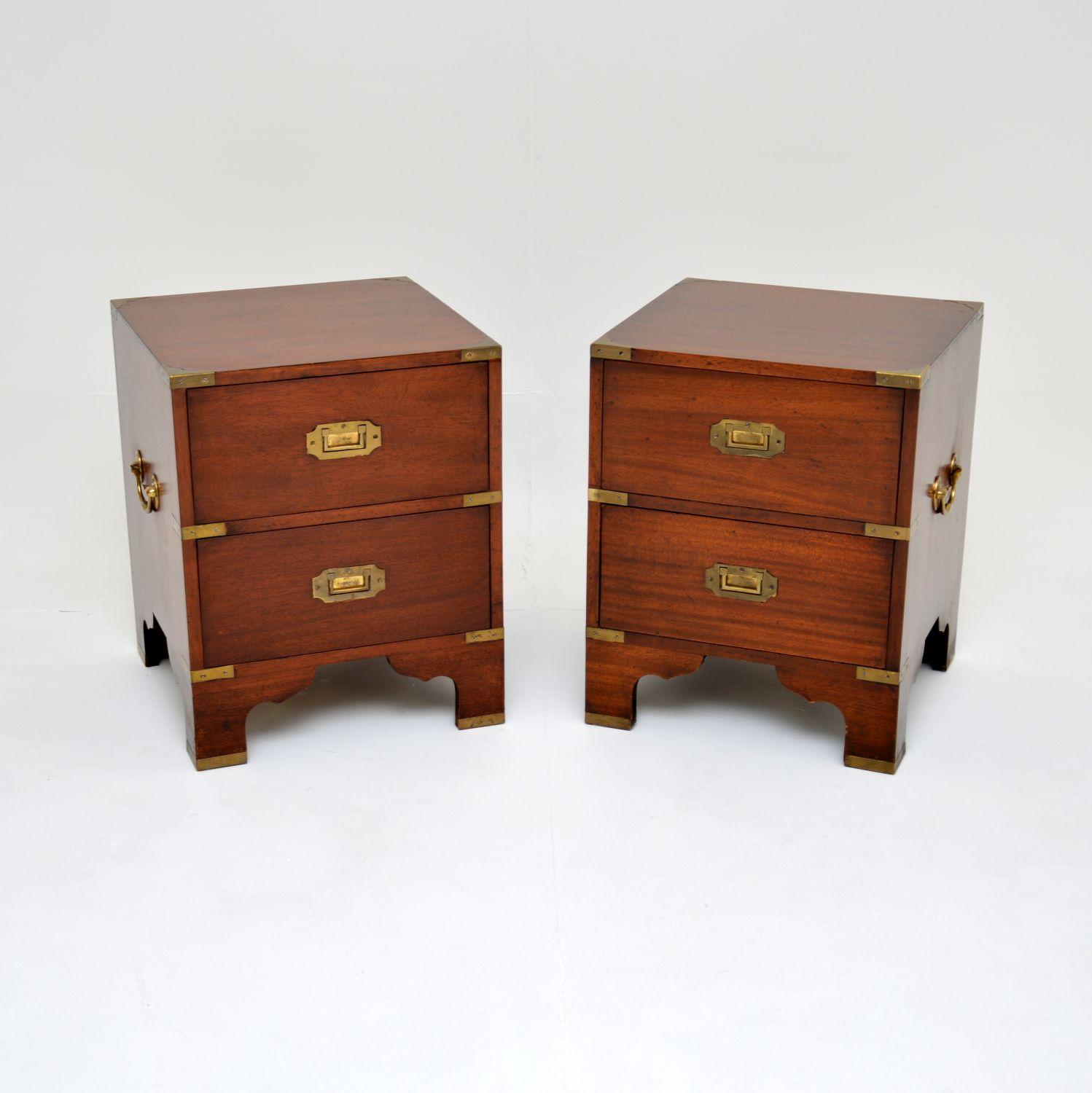 Pair of Antique Mahogany Military Campaign Bedside Chests (1 of 10)