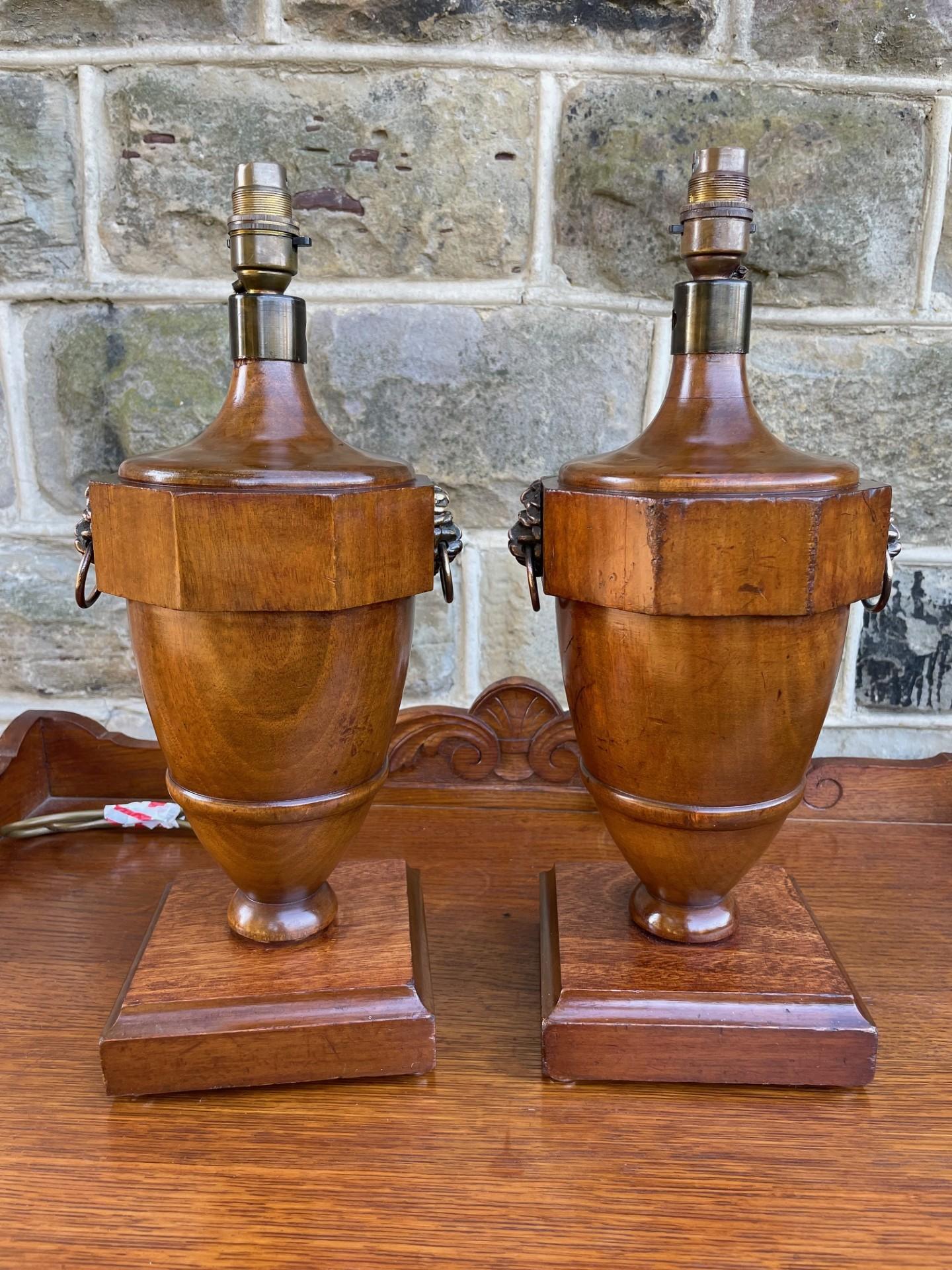 Pair of Antique Mahogany Urn Shaped Table Lamps