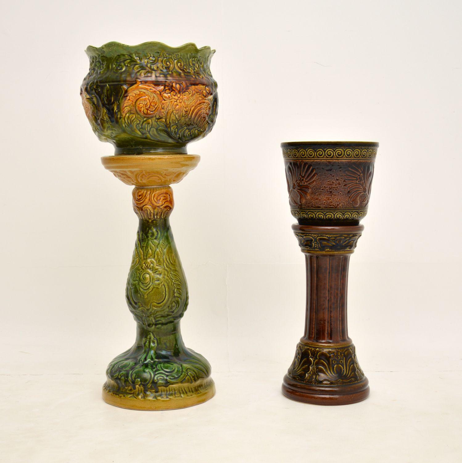 Pair of Antique Majolica Porcelain Plant Stands