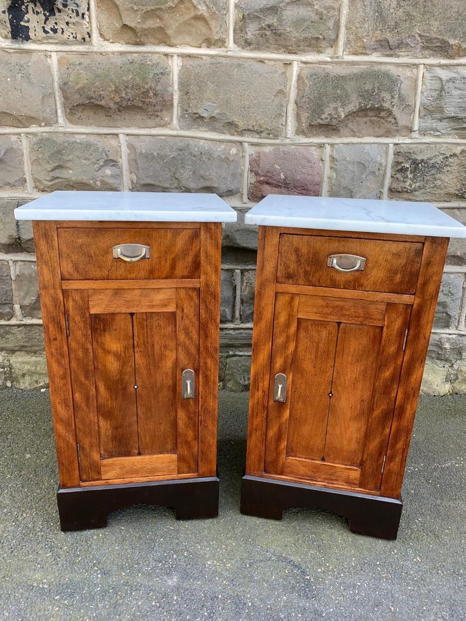 Pair of Antique Marble Top Satinwood Bedside Cabinets