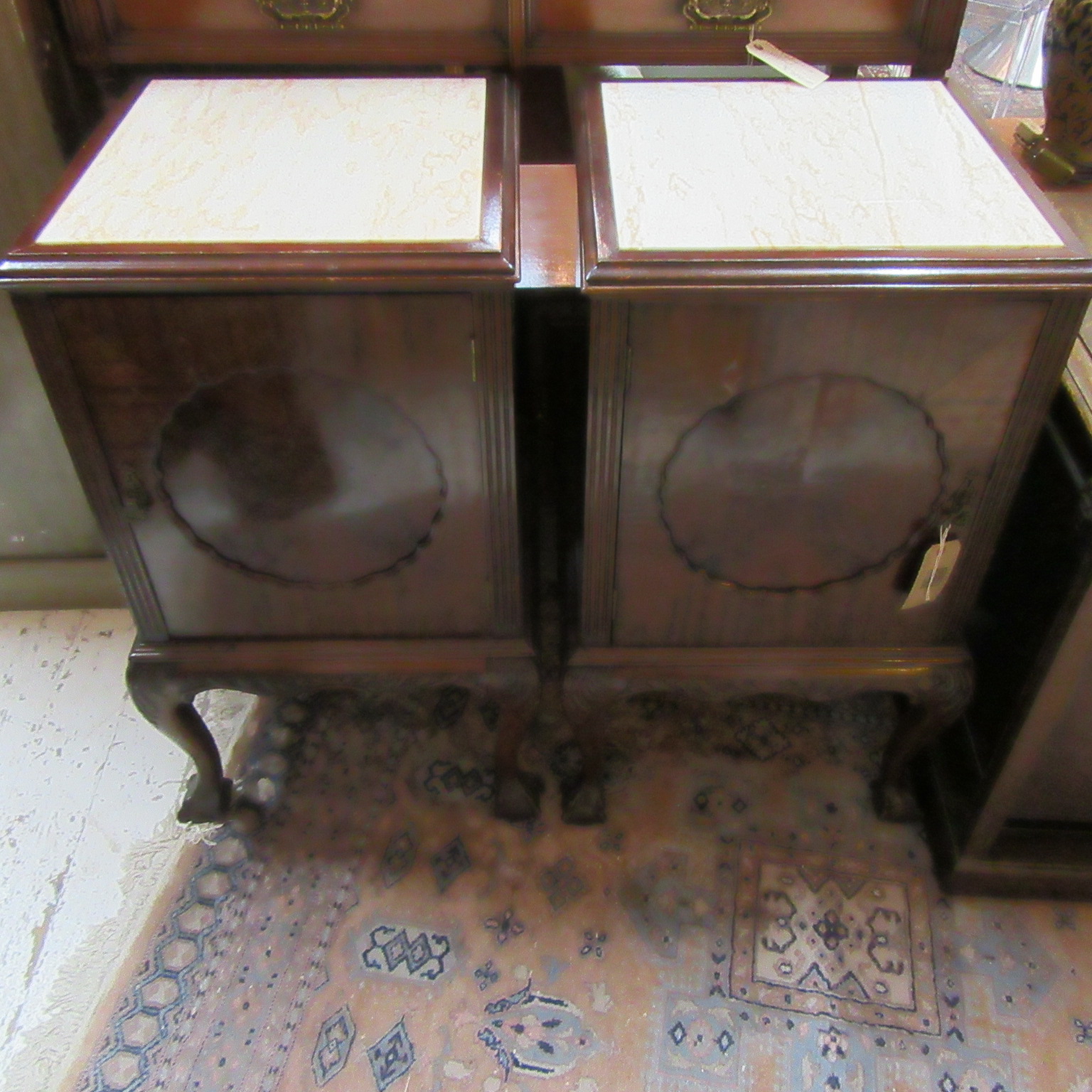 Pair of Antique Marble Topped Bedside Cabinets c.1910