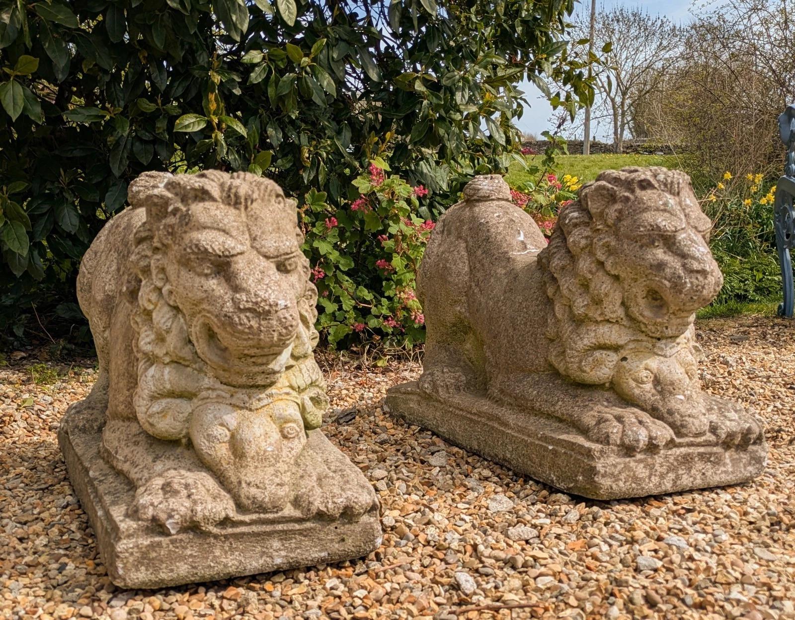 Pair of Antique Medieval Style Stone Garden Lions (1 of 6)