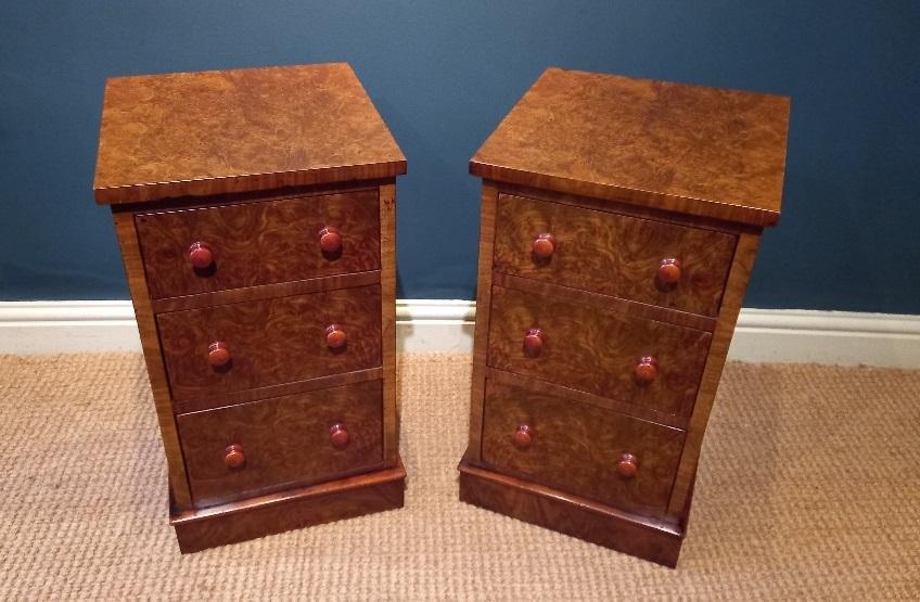 Pair of Antique Mid Victorian Burr Walnut Bedside Cabinets