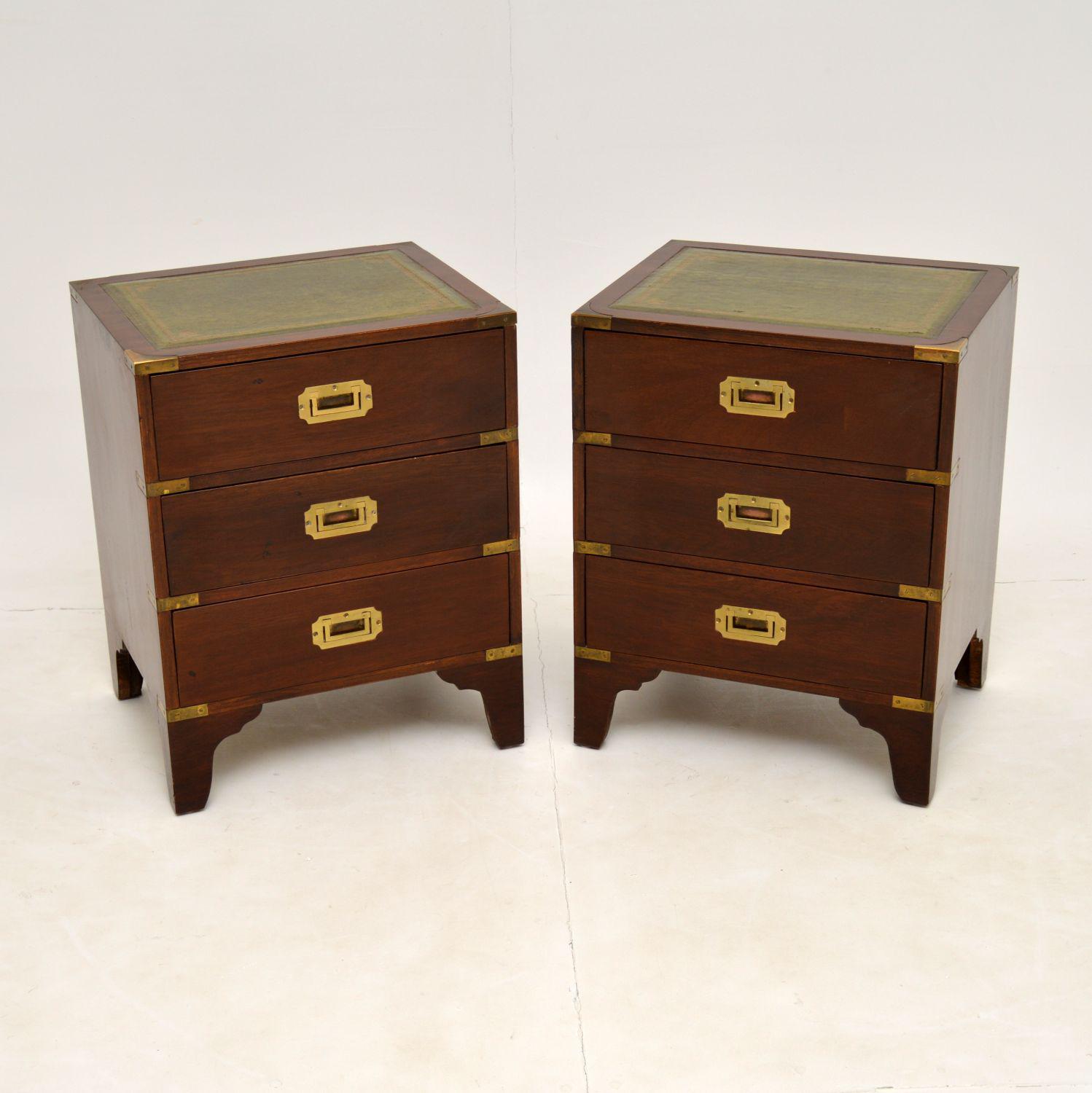 Pair of Antique Military Campaign Style Mahogany Bedside Chests