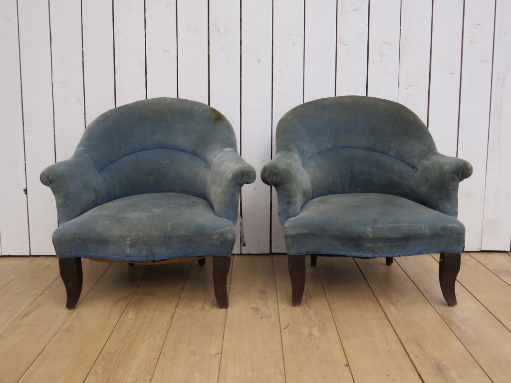 Pair of Antique Napoleon III Tub Chairs for Re-Upholstery