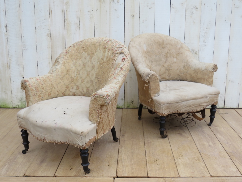 Pair of Antique Napoleon III Tub Chairs for Re-Upholstery