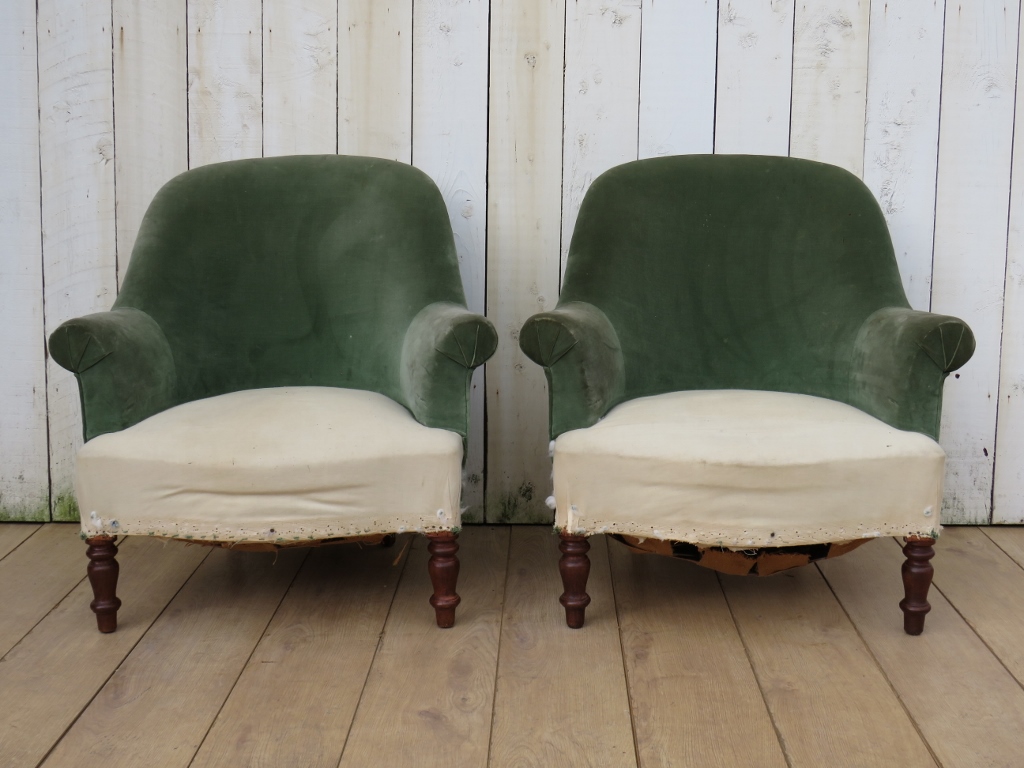 Pair of Antique Napoleon III Tub Chairs for Re-Upholstery