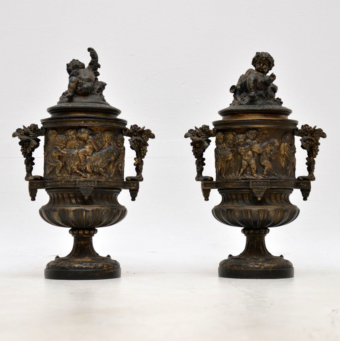 Pair of Antique Neoclassical Bronze Urns c.1870