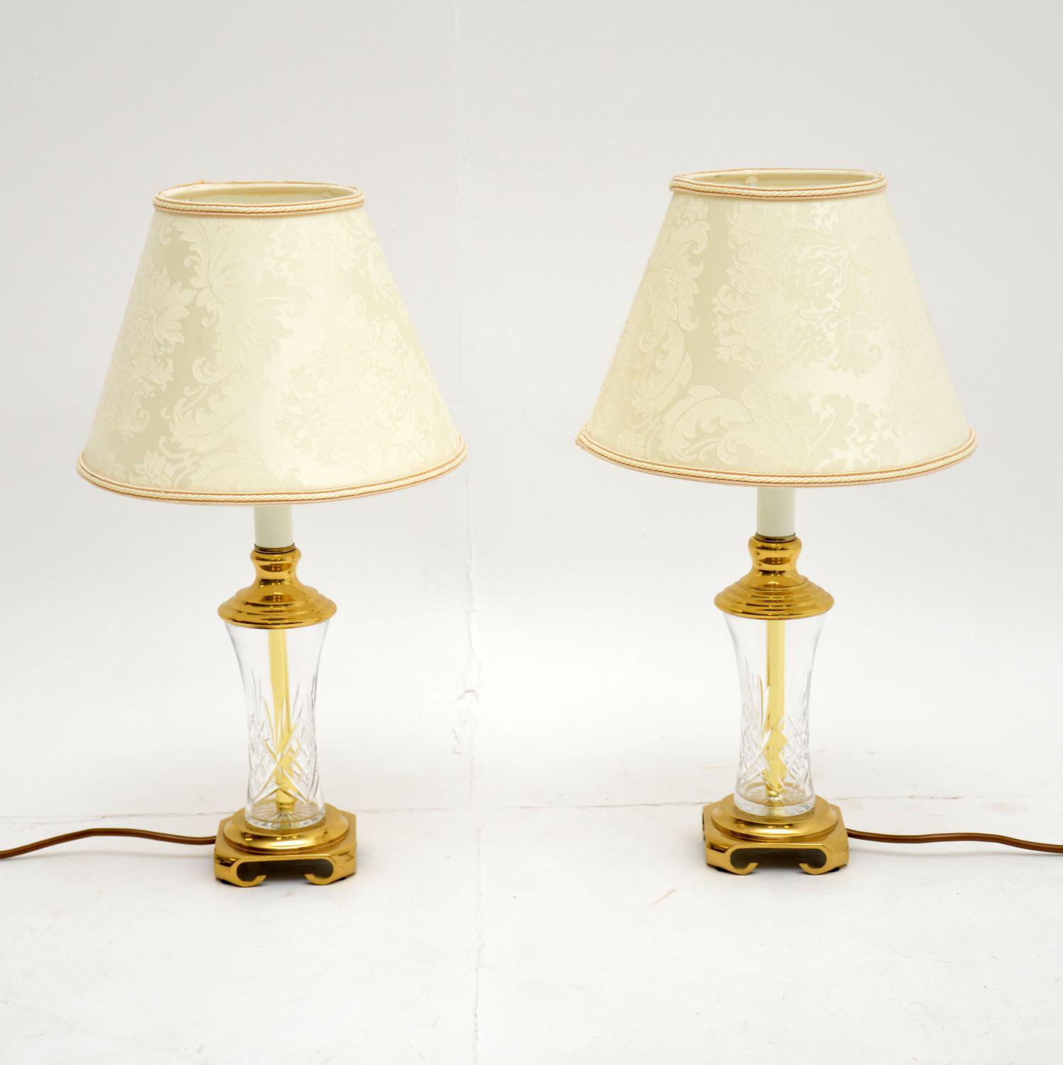 Pair of Antique Neoclassical Style Glass & Brass Table Lamps