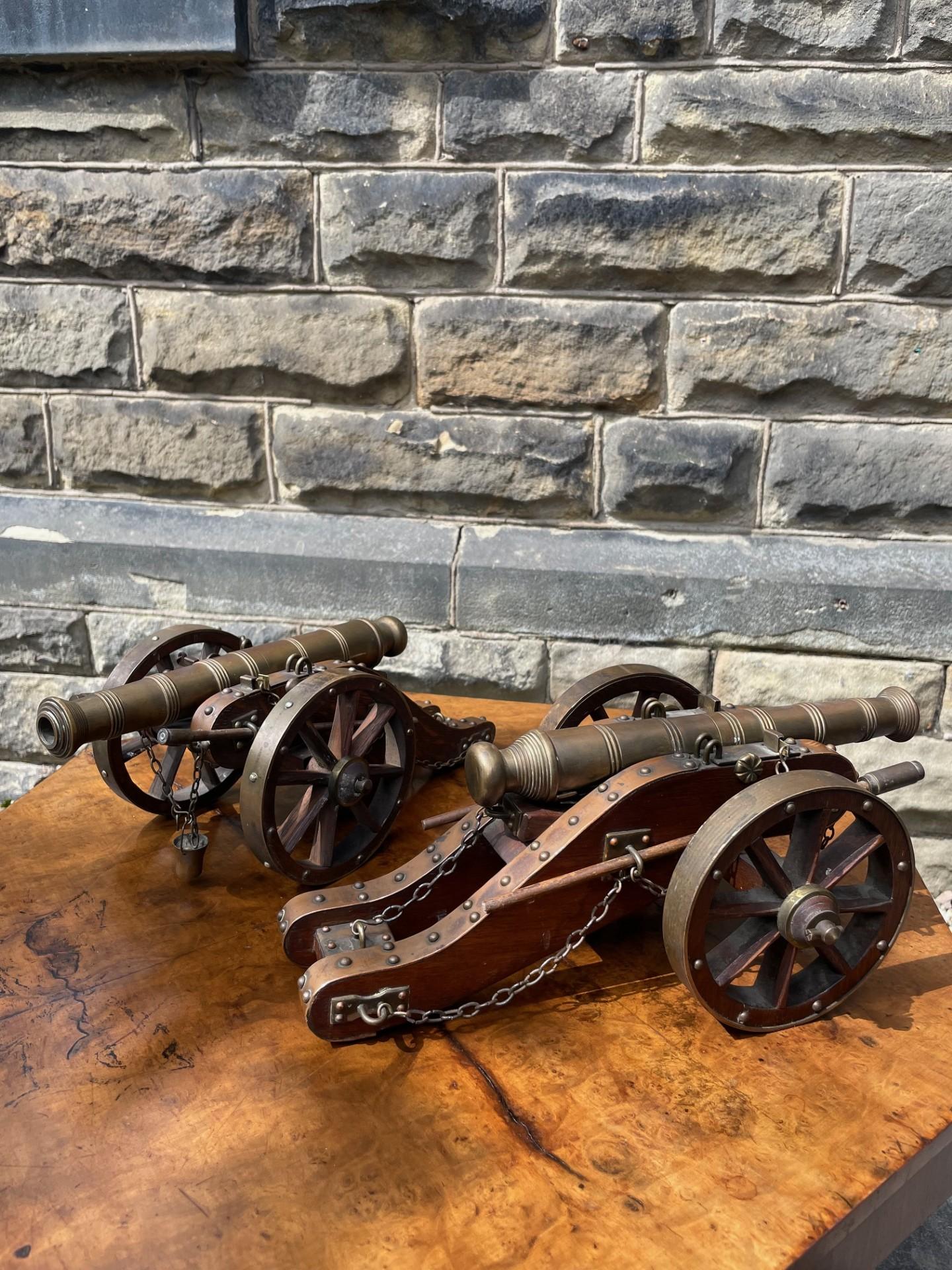 Pair of Antique Oak & Brass Scratch Built Cannons