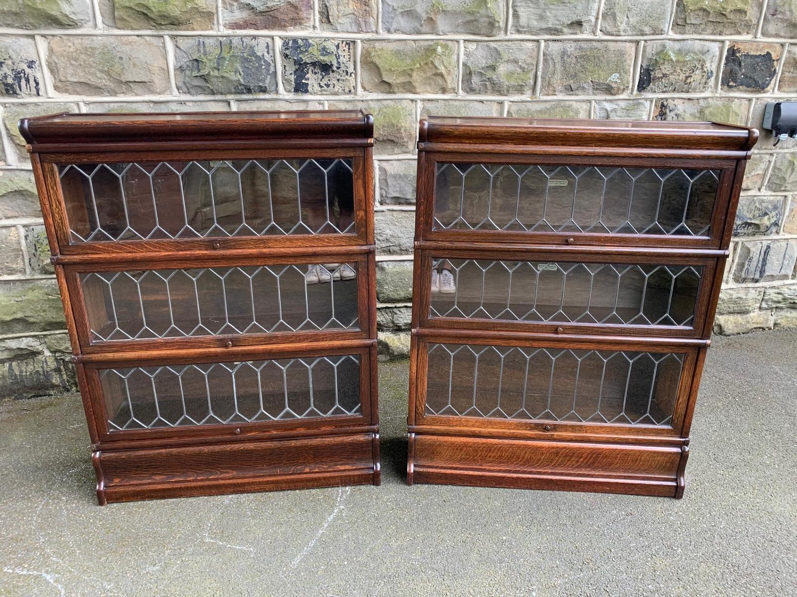 Pair of Antique Oak Globe Wernicke Stacking Library Bookcases