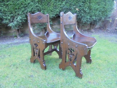Pair of Antique Oak Hall Chairs / Hall Seat Stool c.1880