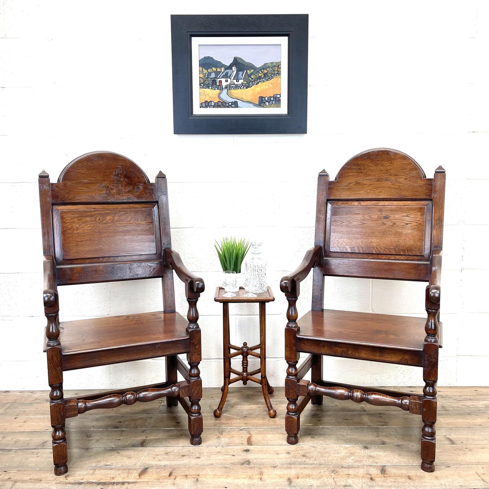 Pair of Antique Oak Throne Chairs