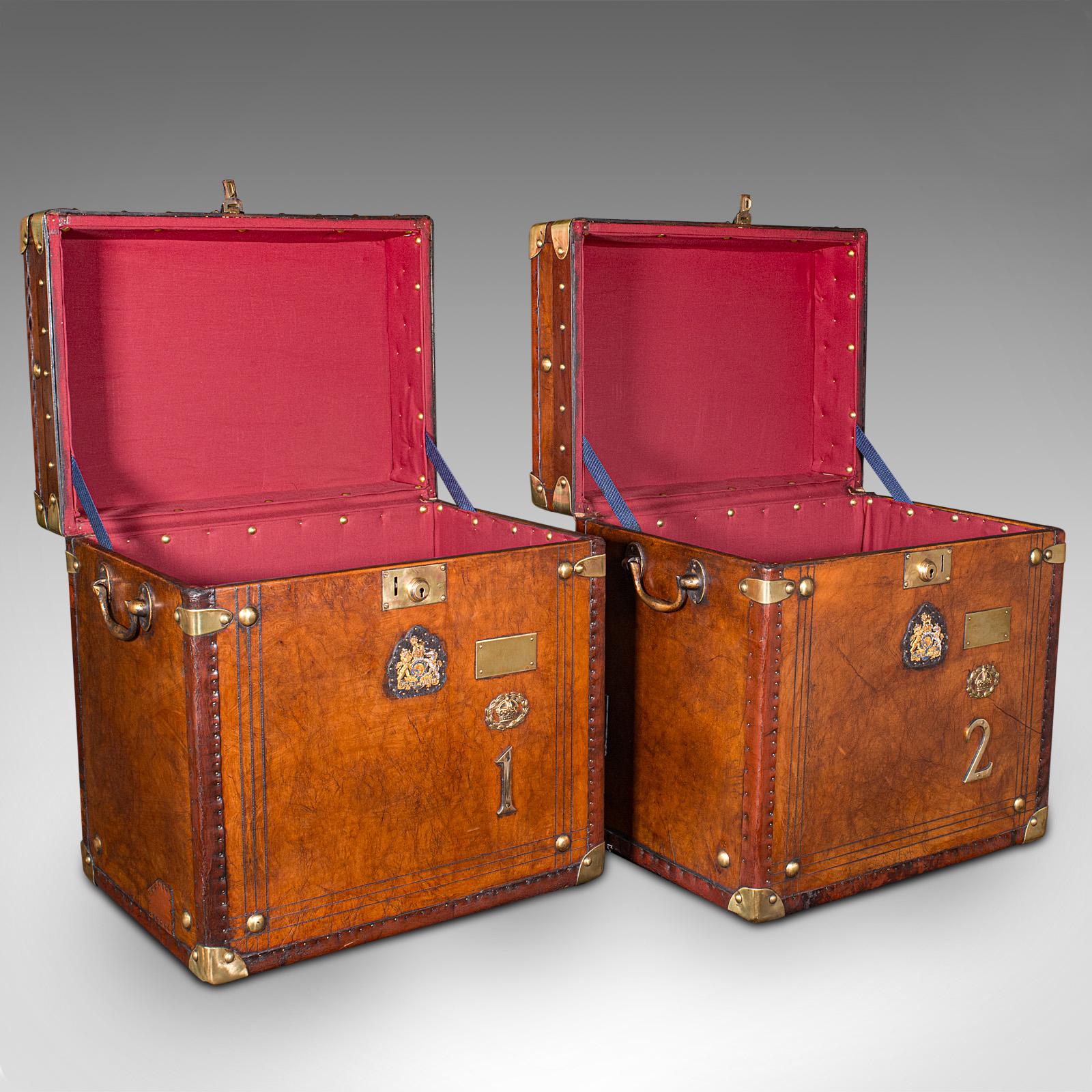 Pair of Antique Officer's Campaign Luggage Cases, English, Nightstands, Edwardian