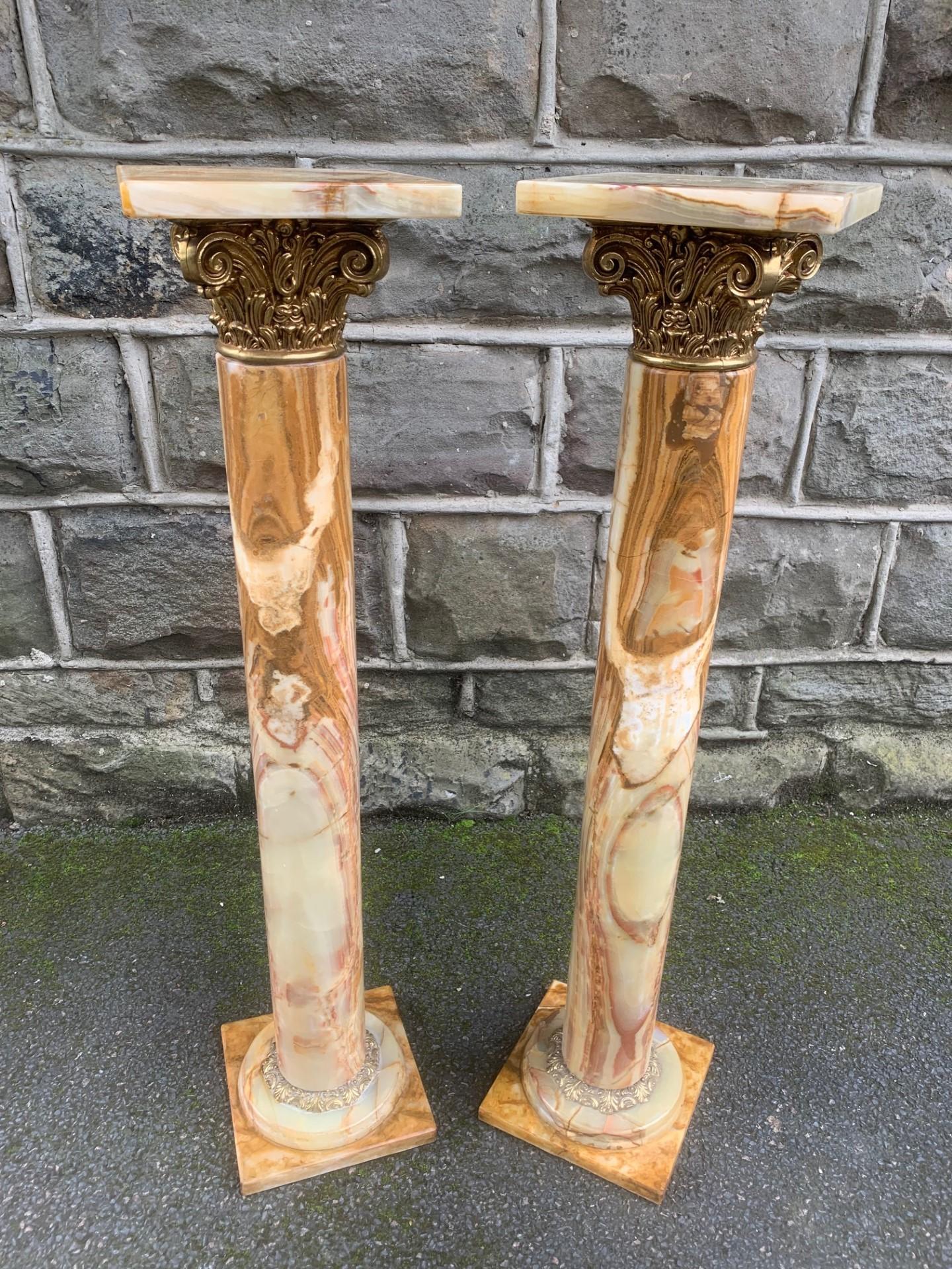 Pair of Antique Onyx Corinthian Columns Pedestal Stands